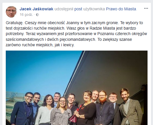 Hmm... To wszystko brzmi trochę jak program wyborczy Jacka Jaśkowiaka? Bingo. Wygląda na to, że ruchy miejskie pójdą do wyborów nie tyle w kontrze do prezydenta, ile z hasłem, że prezydent mimo deklaracji nie realizuje tych postulatów. I że społecznicy zrobią to lepiej.